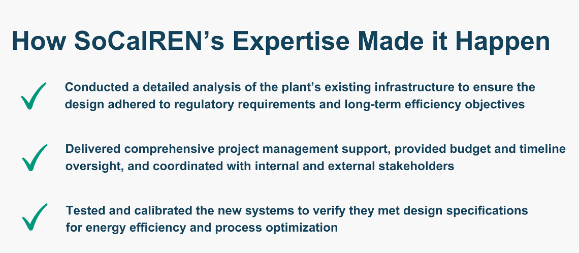 Are you interested in completing a similar project at your facility? Reach out to your SoCalREN Project Manager to get started. Don’t have a SoCalREN Project Manager? No worries! Fill out the registration form at socalren.org/join to get started.